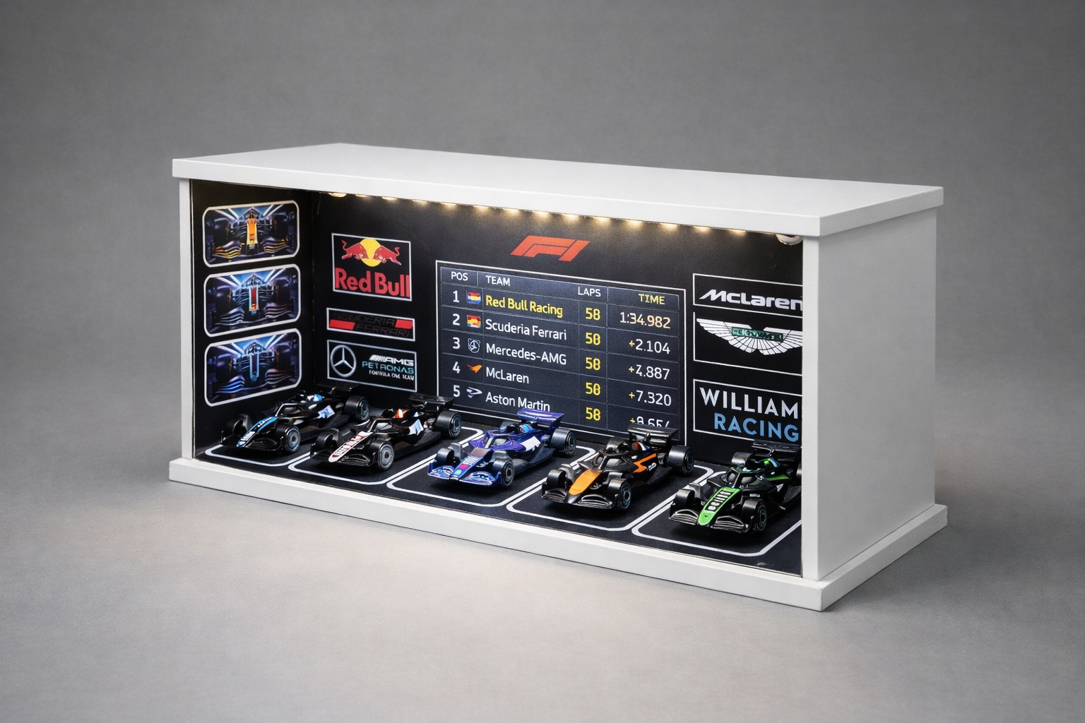 F1-Inspired LED Racing Garage Display Frame (Cars Not Included)