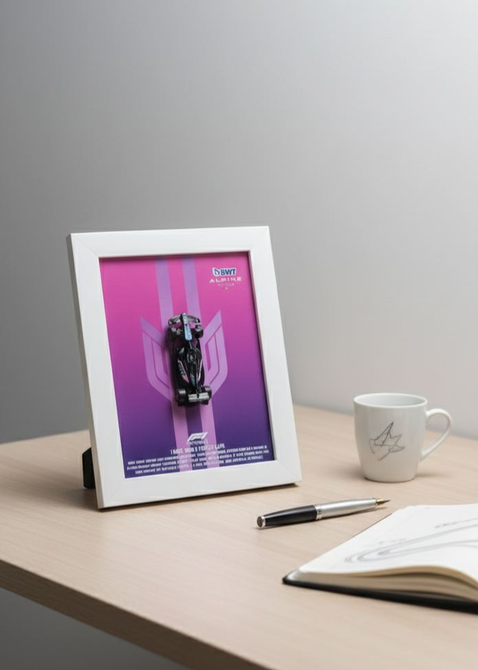 Hot Wheels BWT Alpine F1 Team Car Framed Display – A524 1:64 Scale Die-Cast Collectible | Official Formula 1 Memorabilia for Fans