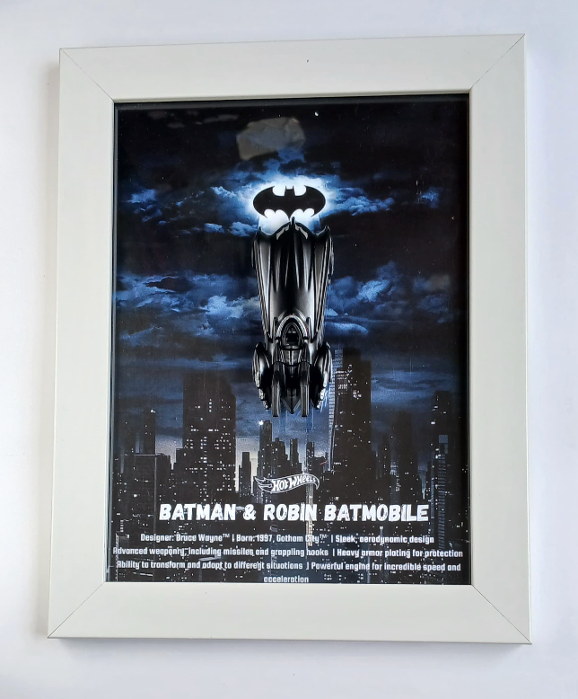 Die-Cast Car Display - 3D Wooden Frame Wall Art for Hotwheels Car Enthusiasts BATMAN & ROBIN BATMOBILE