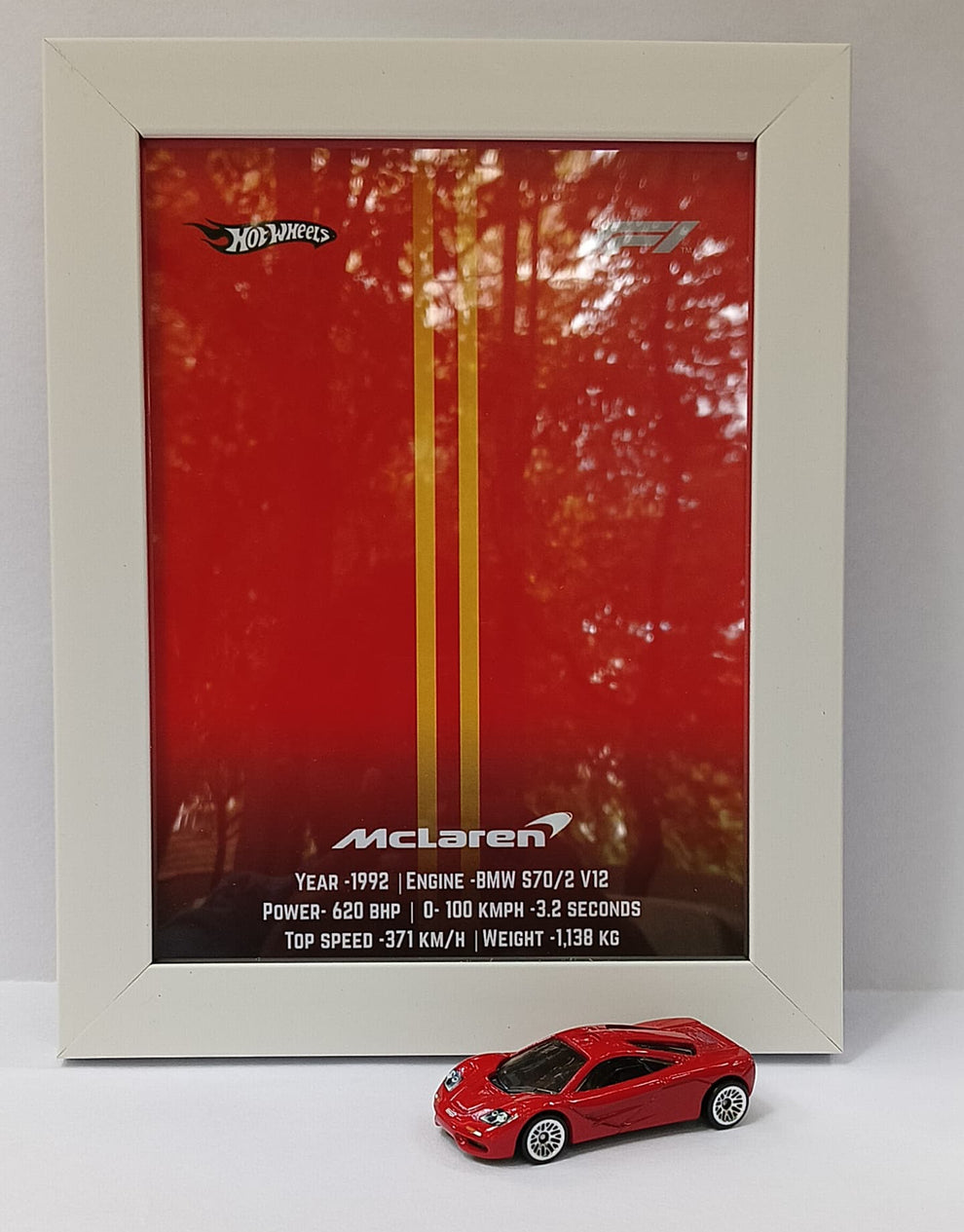 Die-Cast Car Display - 3D Wooden Frame Wall Art for Hotwheels Car Enthusiasts McLaren F1 HW